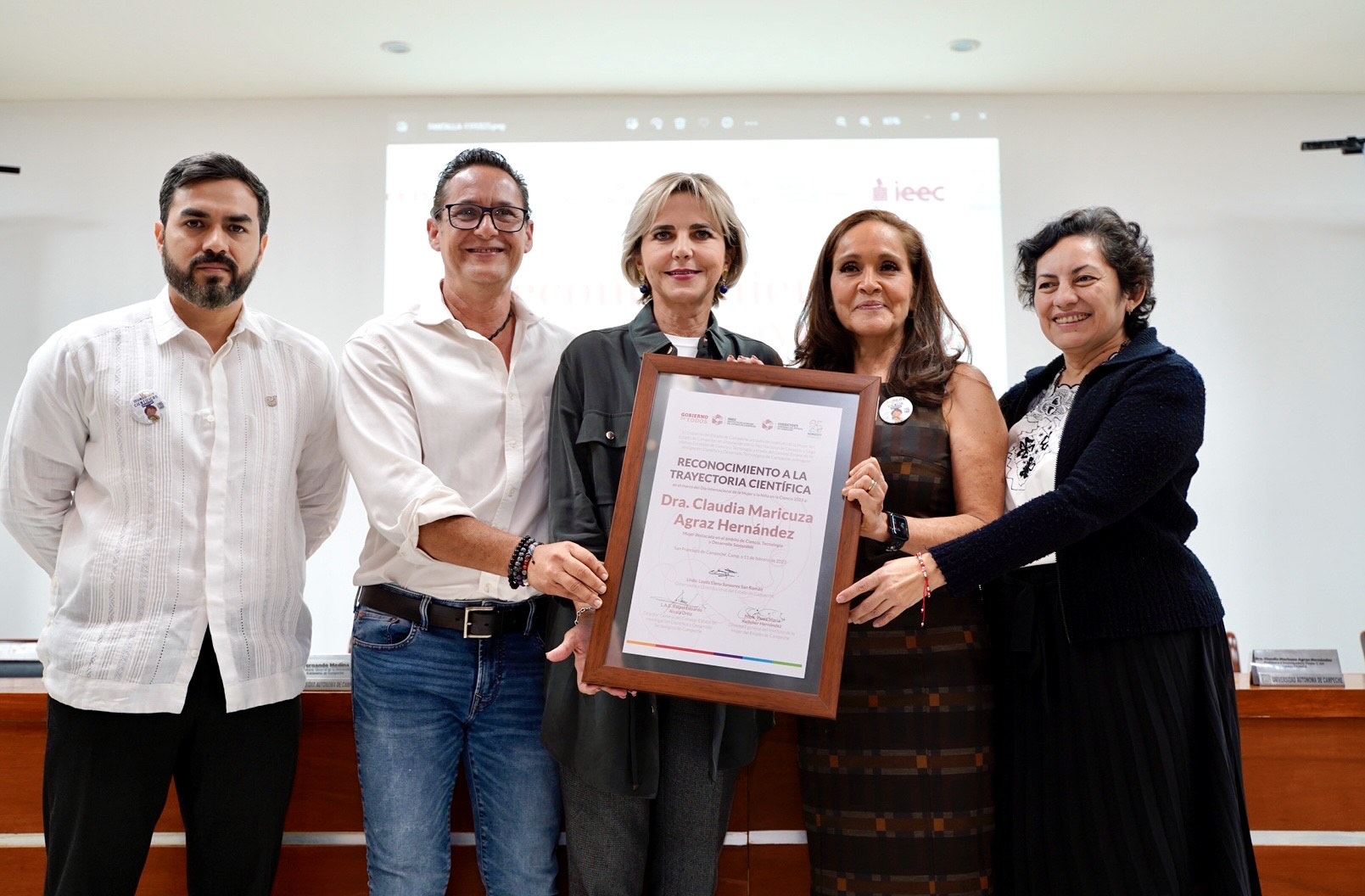 En presencia de la Mtra. Vania Kelleher Hernández, directora general del IMEC, el secretario general, Mtro. Fernando Medina Blum reconoció el trabajo de la investigadora, por sus destacadas aportaciones a la ciencia, a través de la investigación, “principalmente encaminadas al cuidado y restauración de nuestro medioambiente. Nos consta su trabajo y dedicación”. Acompañada de familiares, colegas y amigos, Agraz Hernández agradeció por haber sido distinguida con este reconocimiento.