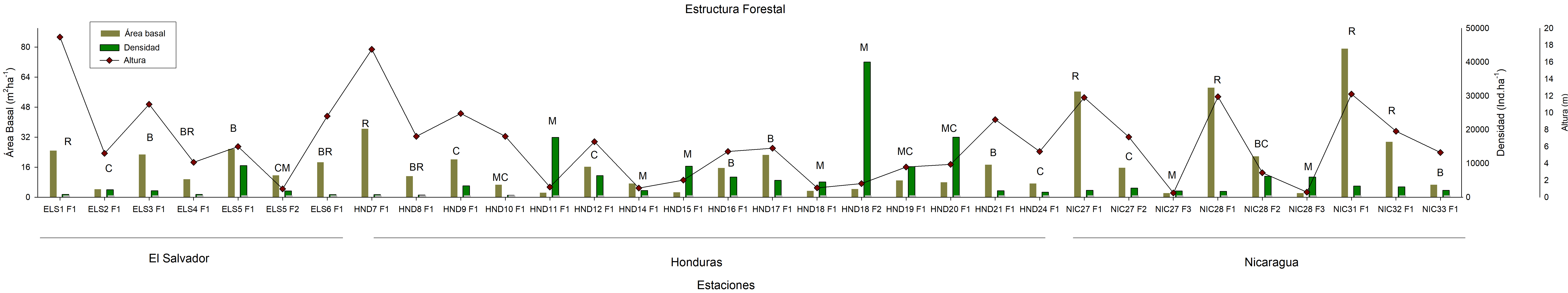 Fig. 4. Determinación de la estructura forestal de bosques de mangle que bordean el Golfo de Fonseca en El Salvador, Honduras y Nicaragua.