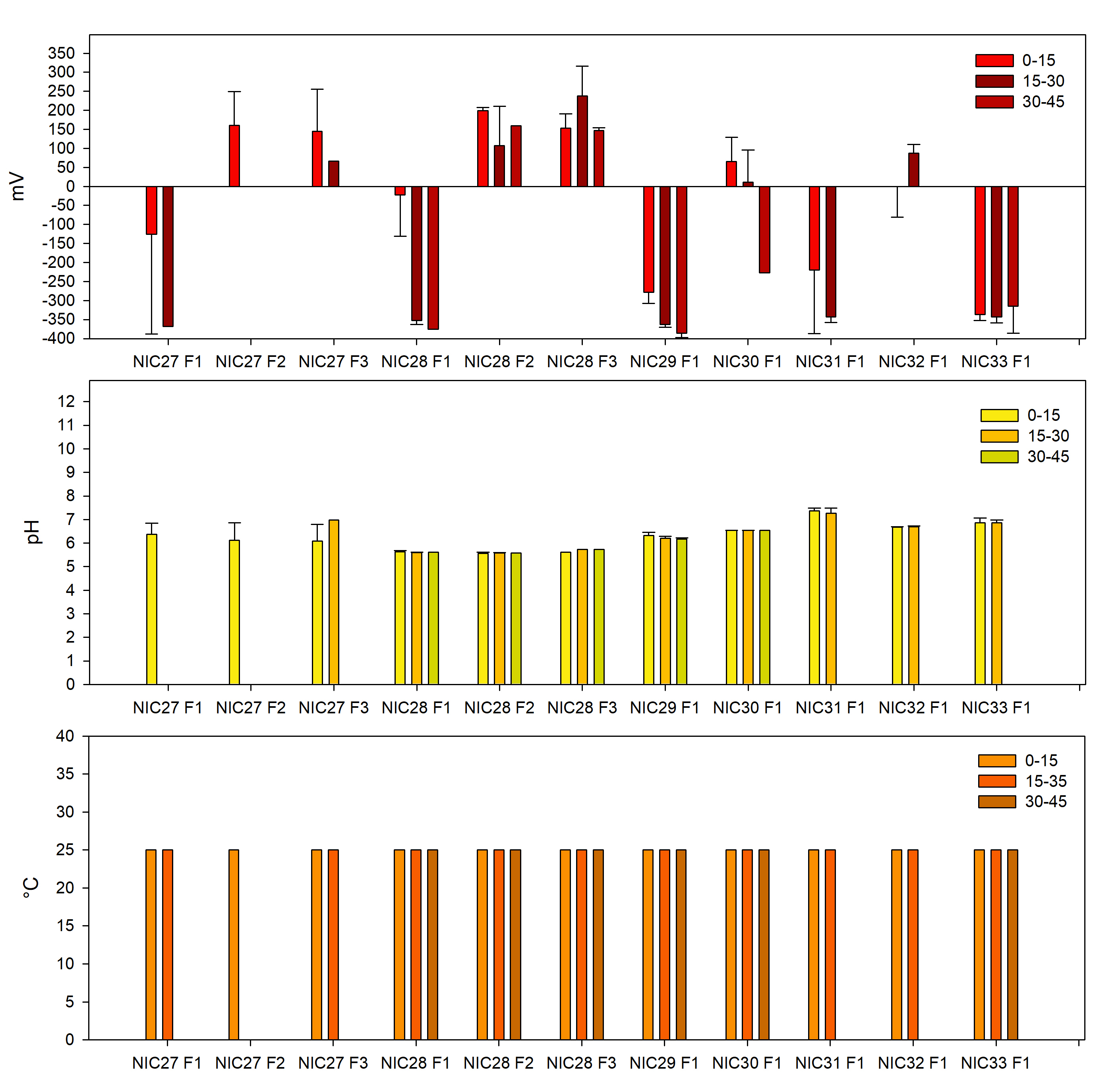 Se colectaron 70 núcleos de suelo a una profundidad máxima de 60 cm, determinando in situ en cada núcleo el pH, temperatura y potencial redox, mediante un equipo multiparamétrico IQ150, generando 580 datos en total (Fig. 3)