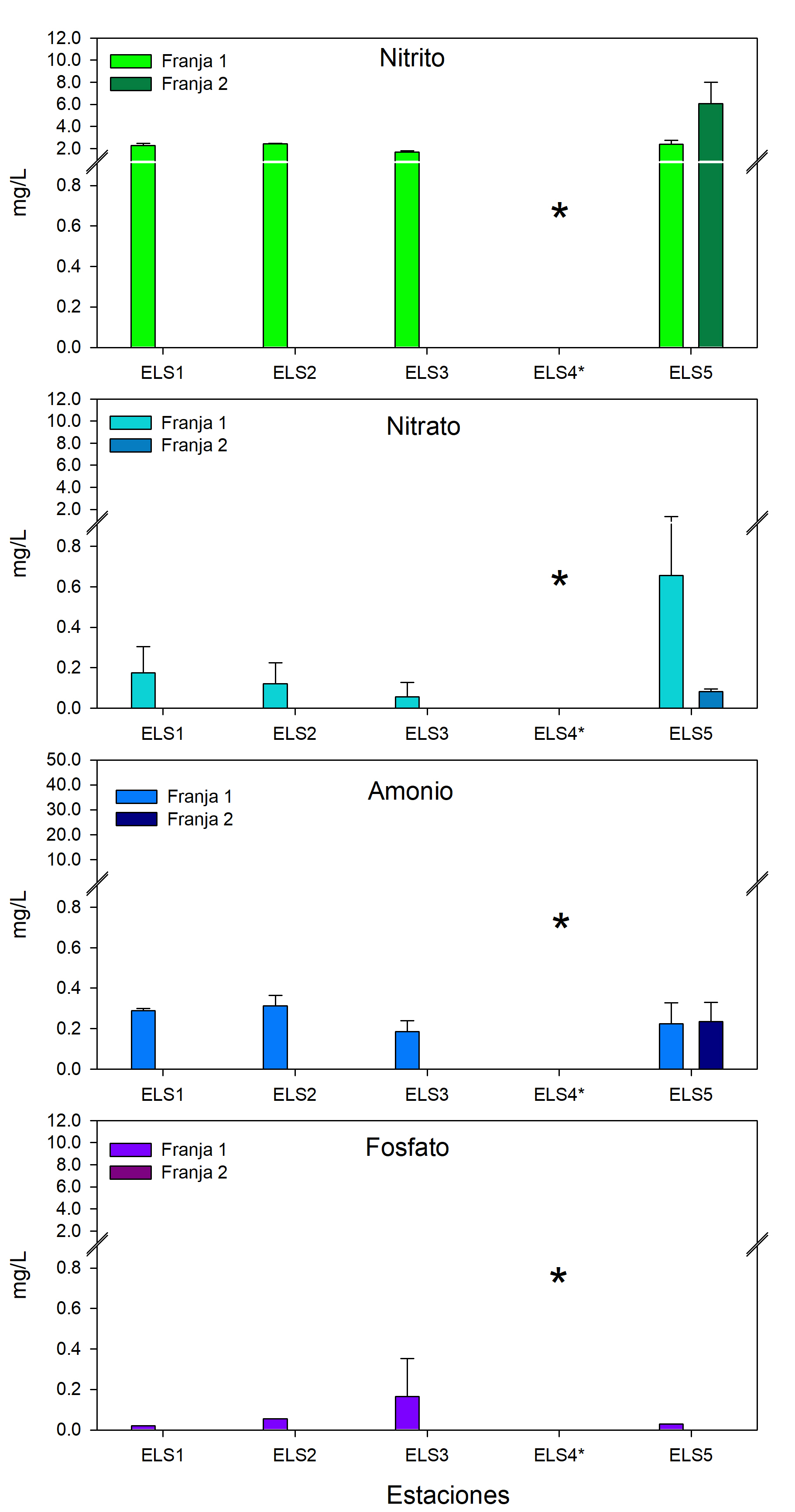Fig. 7a. Concentración de los nutrientes en el agua intersticial en los bosques de mangle que bordean El Salvador ubicados en el Golfo de Fonseca.
