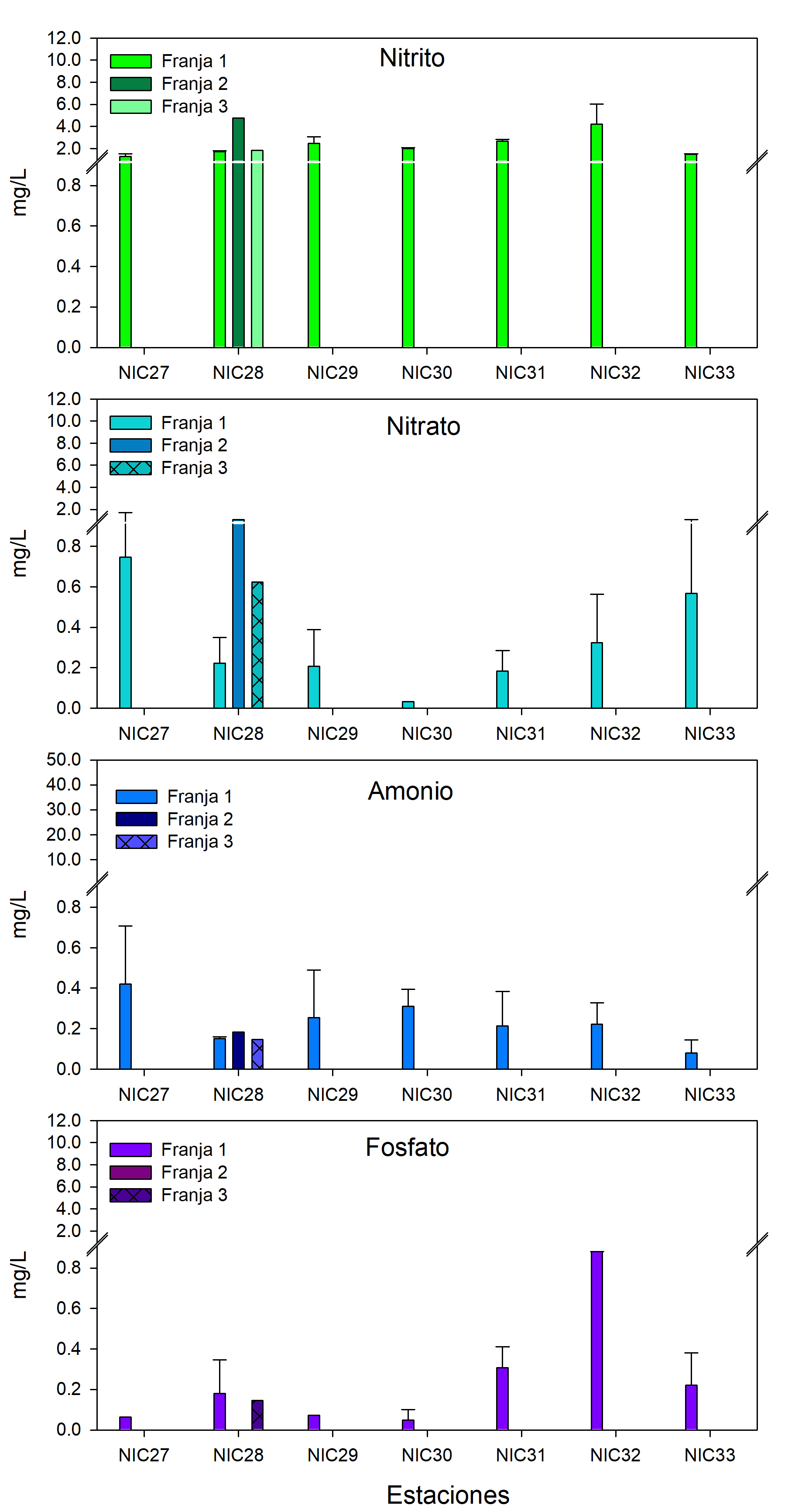Fig. 7c. Concentración de los nutrientes en el agua intersticial en los bosques de mangle que bordean en Nicaragua ubicados en el Golfo de Fonseca.
