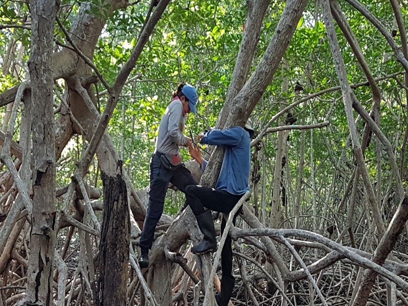 Fig. 12. Comportamiento de juveniles en el sotobosque de los bosques de mangle que bordean el Golfo de Fonseca en El Salvador, Honduras y Nicaragua.