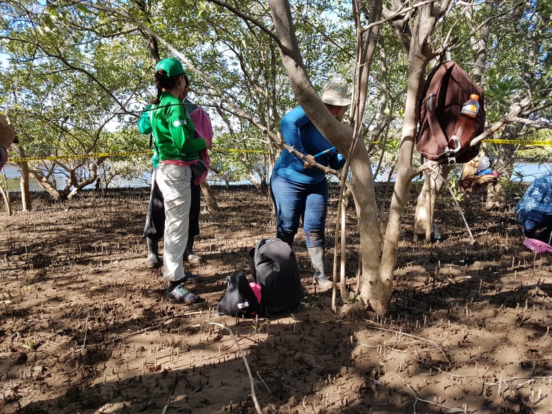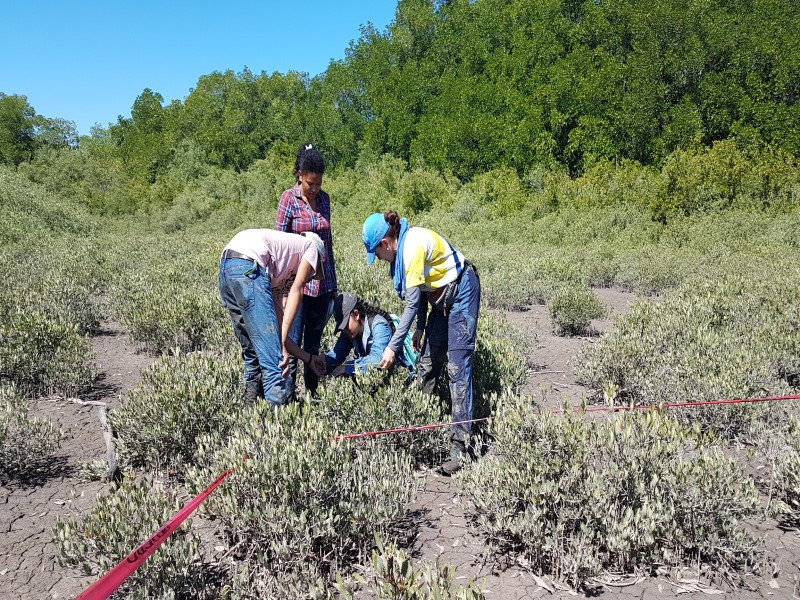Fig. 5. Identificación de las especies in situ de acuerdo a las características en hojas, flores y tallo. Bosque mixto de Avicennia germinans y Avicennia bicolor.