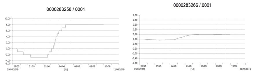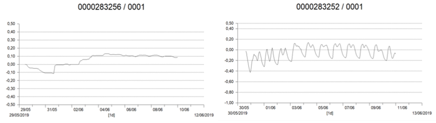 Se determino el comportamiento del agua intersticial antes y posterior (Fig. 23) a la excavación de los canales artificiales, exhibiendo antes de las acciones de rehabilitación hidrológica con tiempos de residencia muy altos, sin capacidad de detección de los Dataloggers. Caso contrario posterior a las acciones de rehabilitación hidrológica, pues se estableció intercambio marino en el área de influencia de la marea por los canales artificiales construidos. Estableciéndose flujo y reflujo del agua continuo e incrementándose durante la entrada del agua dulce, como consecuencia de la entrada del agua dulce por las lluvias. Definiéndose fluctuaciones en el tirante del agua de 10 a 30 cm en área con presencia de canales artificiales y de -10 a -20 cm (flujo solo vía intersticial) o sin movimiento|.