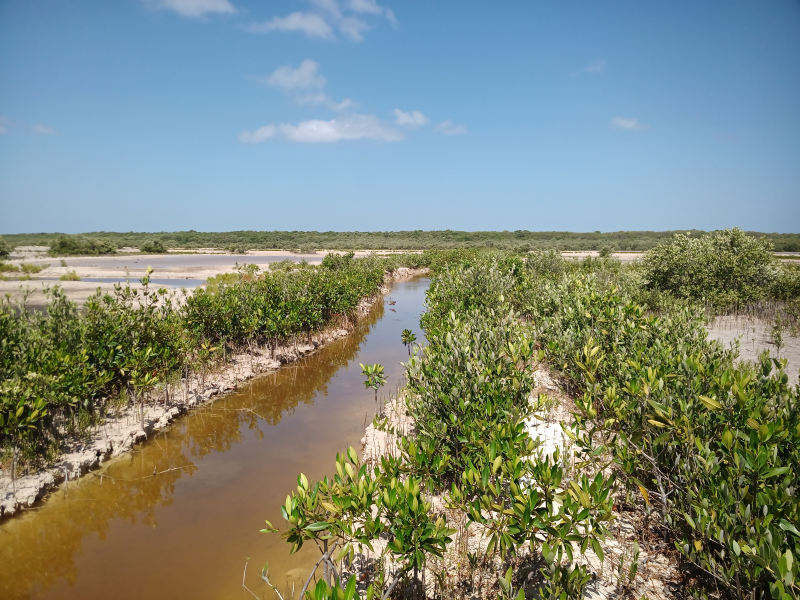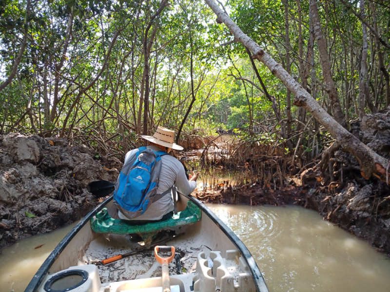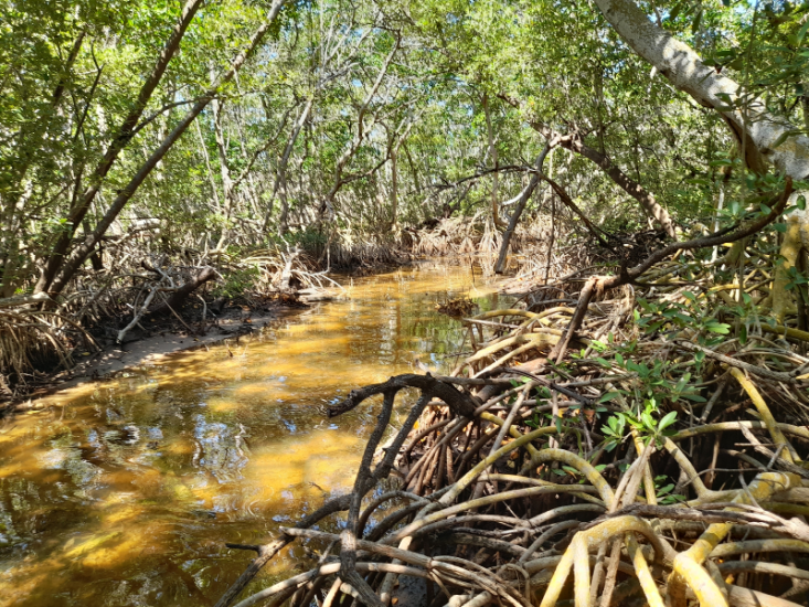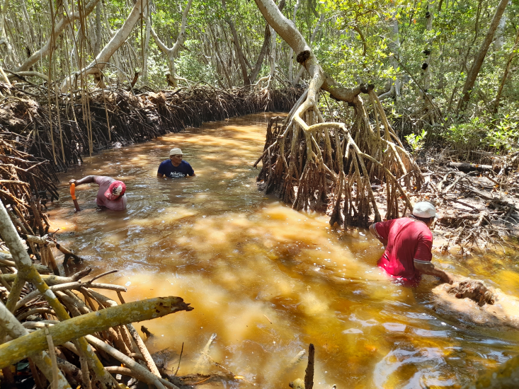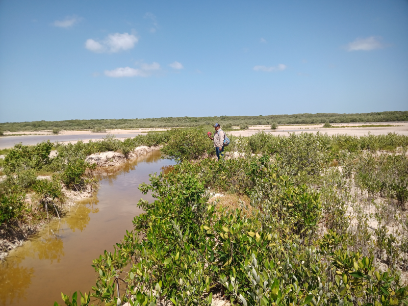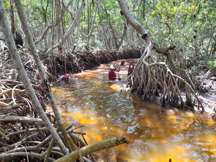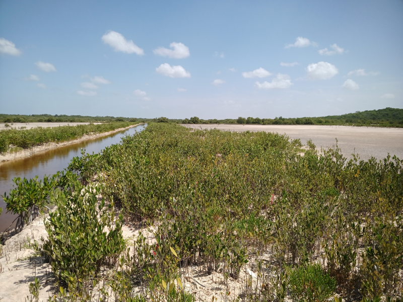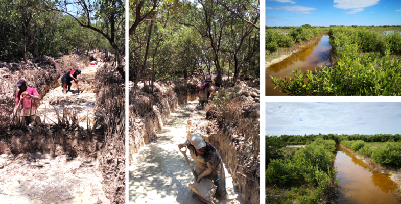 Fig. 32. Excavación de canales artificiales en el 2021 en un sitio con acciones de restauración, ubicado en la Reserva de la Biosfera los Petenes, Campeche.