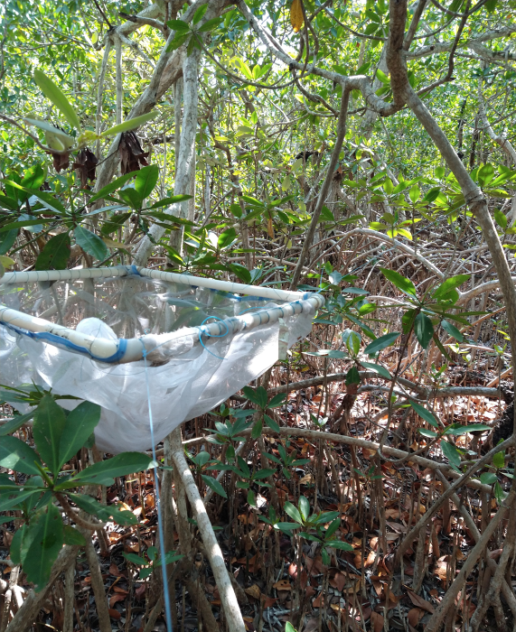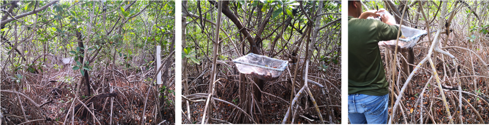Fig. 3. Canasta de defoliación instaladas en los sitios de referencia para la determinación de la productividad de los bosques de mangle y la reproducción fenológica.