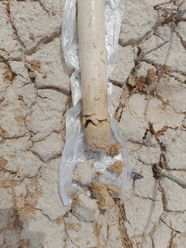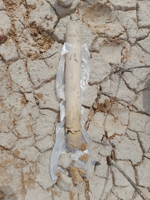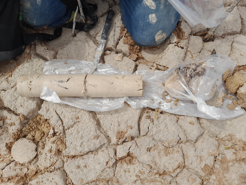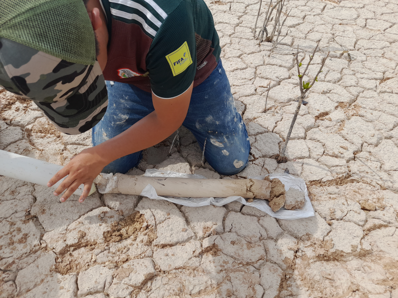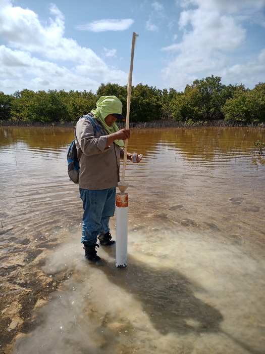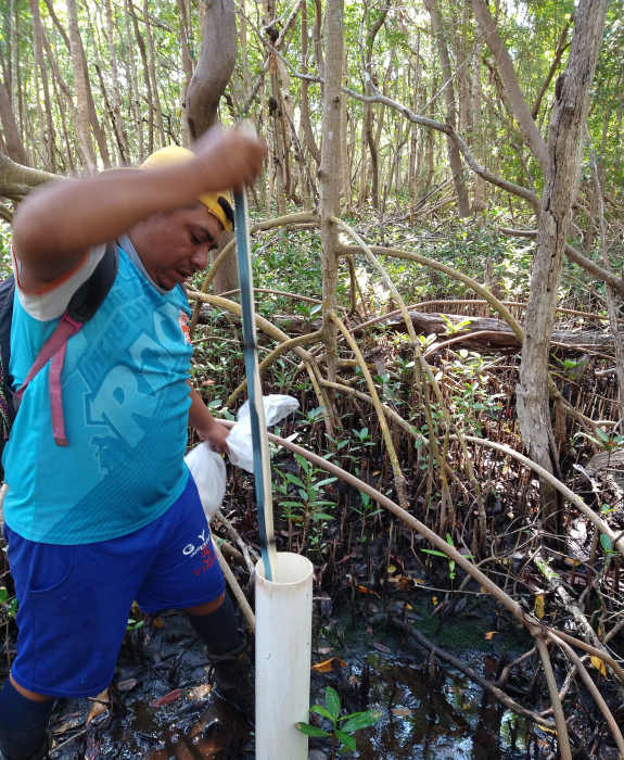 Fig. 4. Colecta de núcleo de suelo en el bosque de referencia área de restauración de la Reserva de la Biosfera Los Petenes, Campeche.